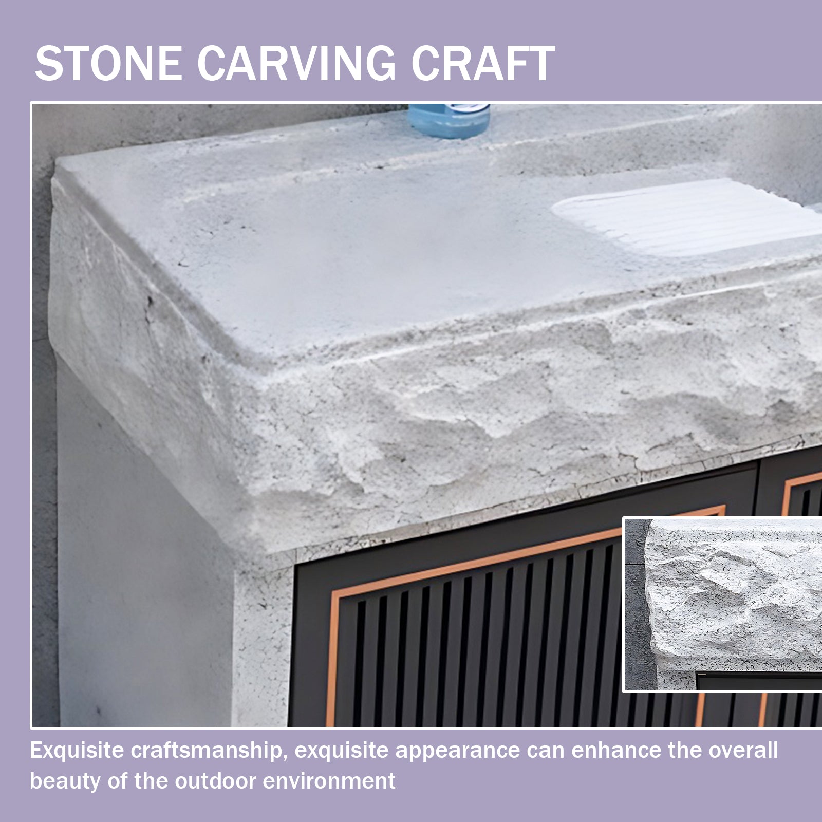 Beautiful and Durable Material:the stone is extremely hard and is not easily damaged after long-term use; the aluminum alloy cabinet door can adapt to the complex and changeable outdoor climate environment