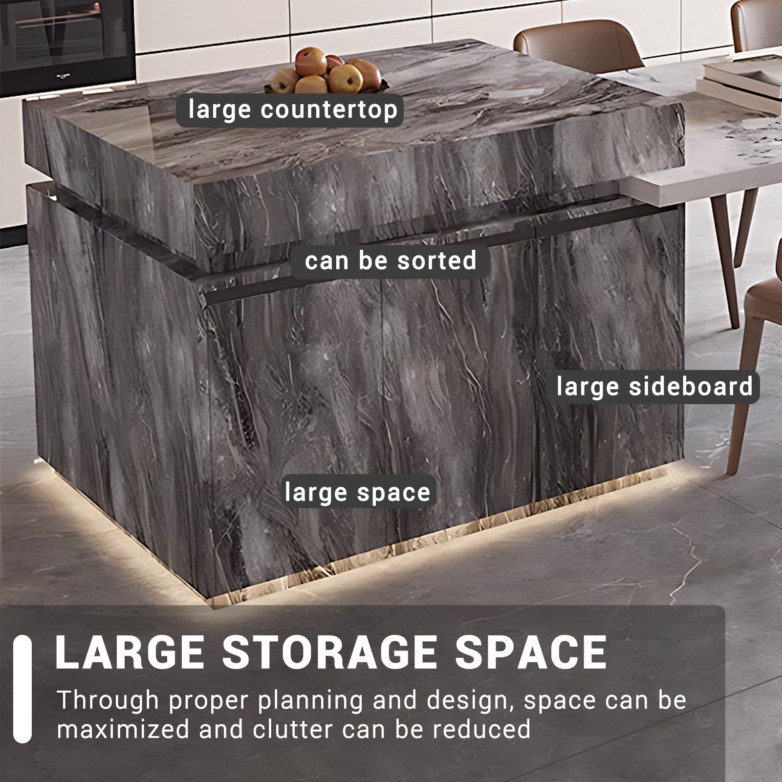 Rock Slab Exterior: Crafted with premium rock slab material, the exterior surface of the island showcases exceptional durability, unparalleled practicality, remarkable hardness, and robust high-temperature resistance