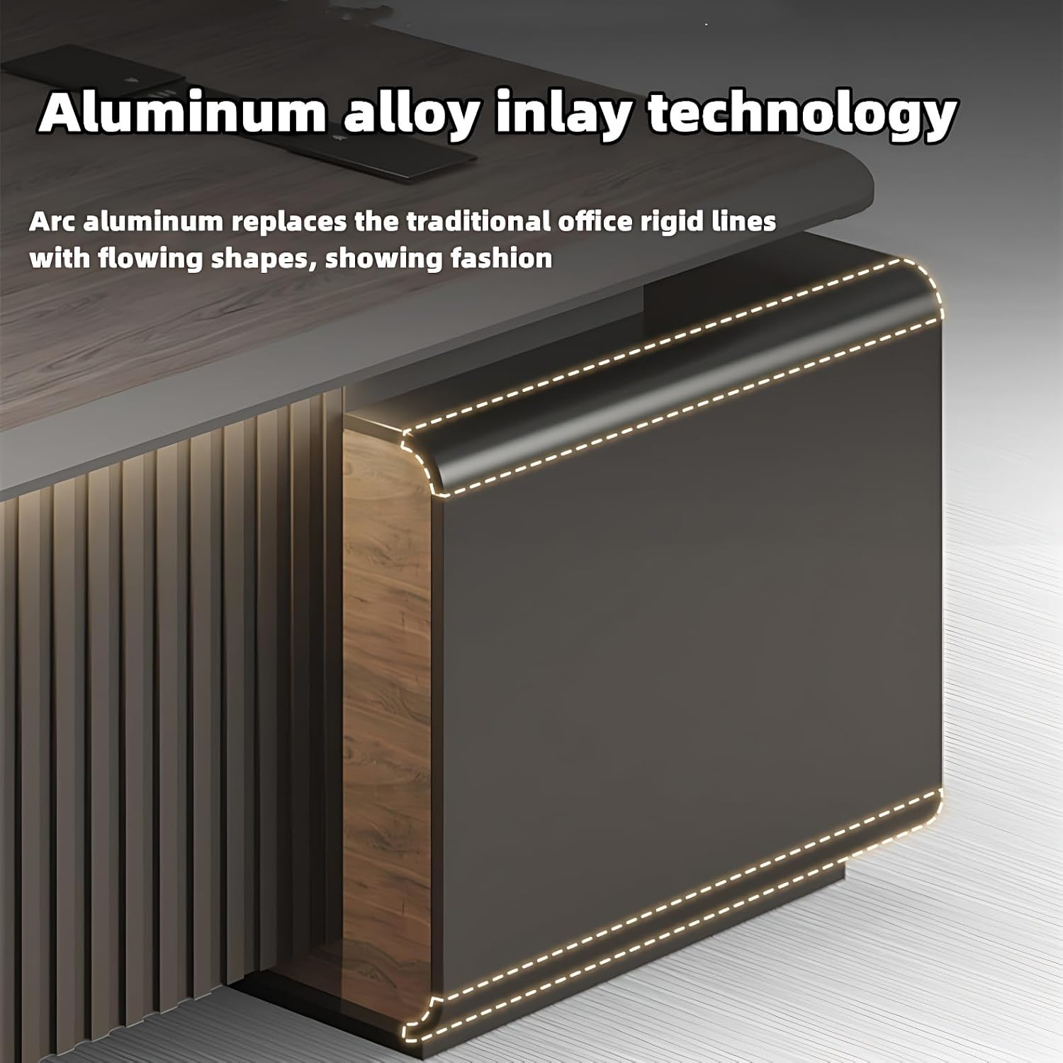 Intelligent Workspace Design: This executive desk features integrated cable management and subtle ambient lighting, seamlessly blending practical organization with modern sophistication. The smart layout enhances both productivity and workspace ambiance for professional efficiency.