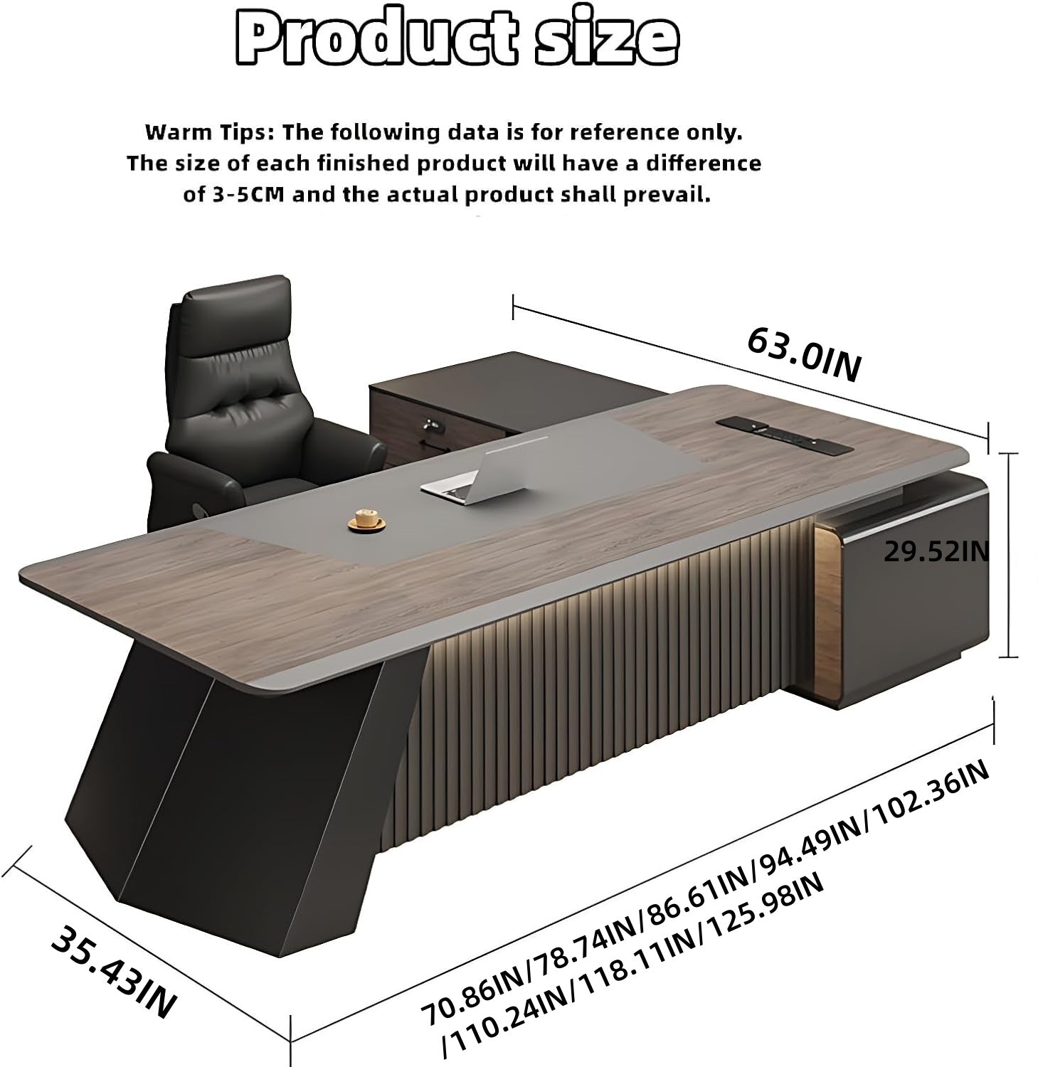 Aihm-Lon Executive Desk with Modern Unique Design 70.86"-125.98"
