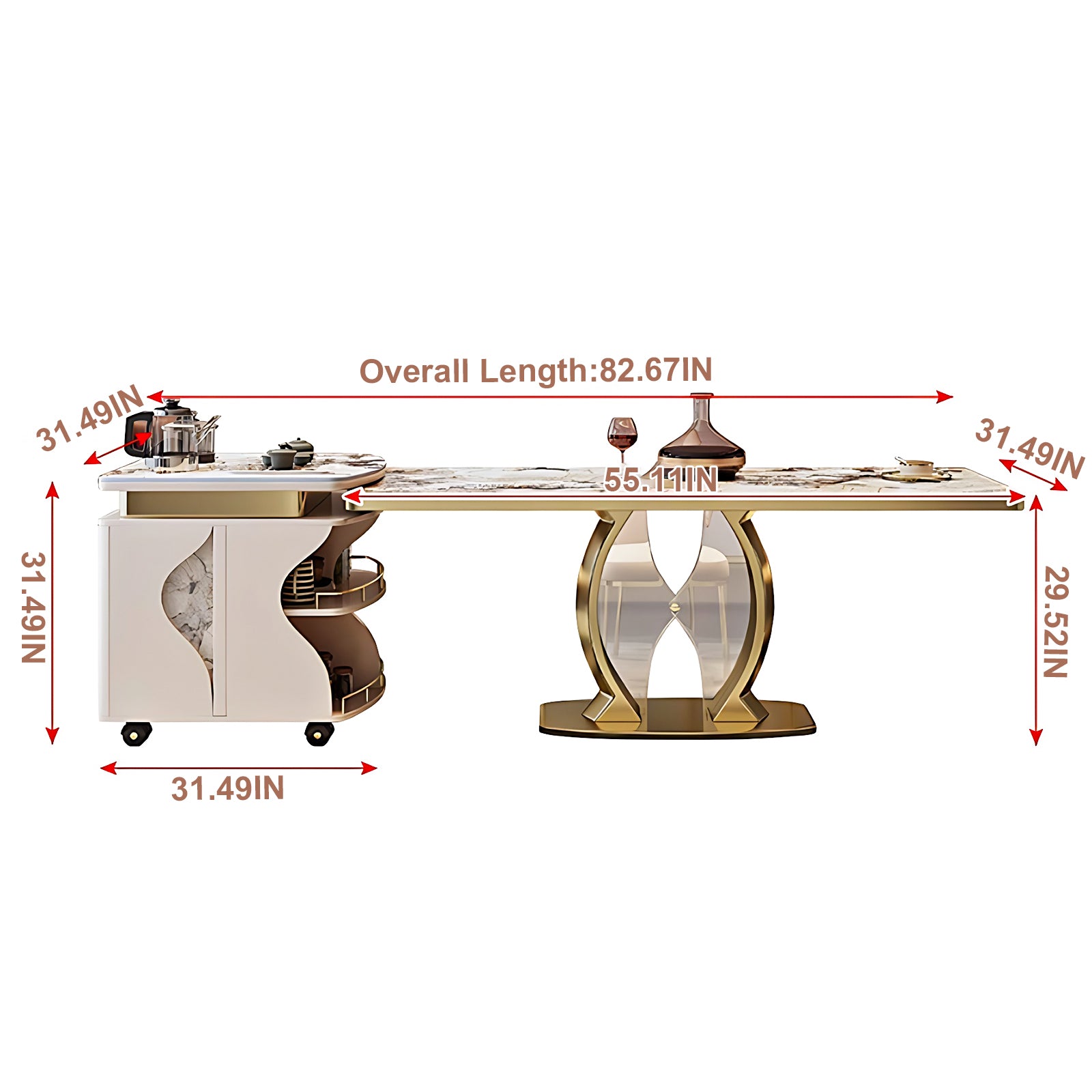 Retractable Dining Table:the island platform and table are integrated, and the size of the table can be adjusted according to the needs, saving space in daily use;when many people have dinner, easy stretching can meet the demand