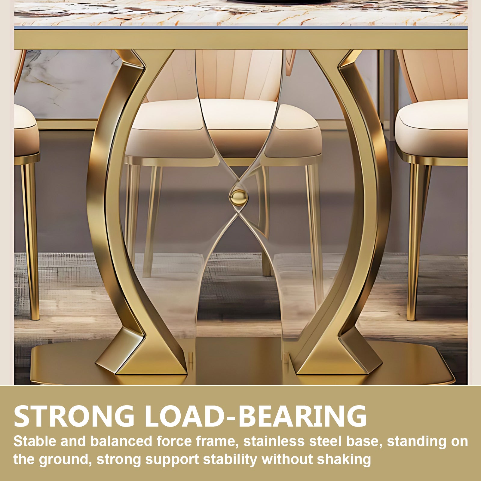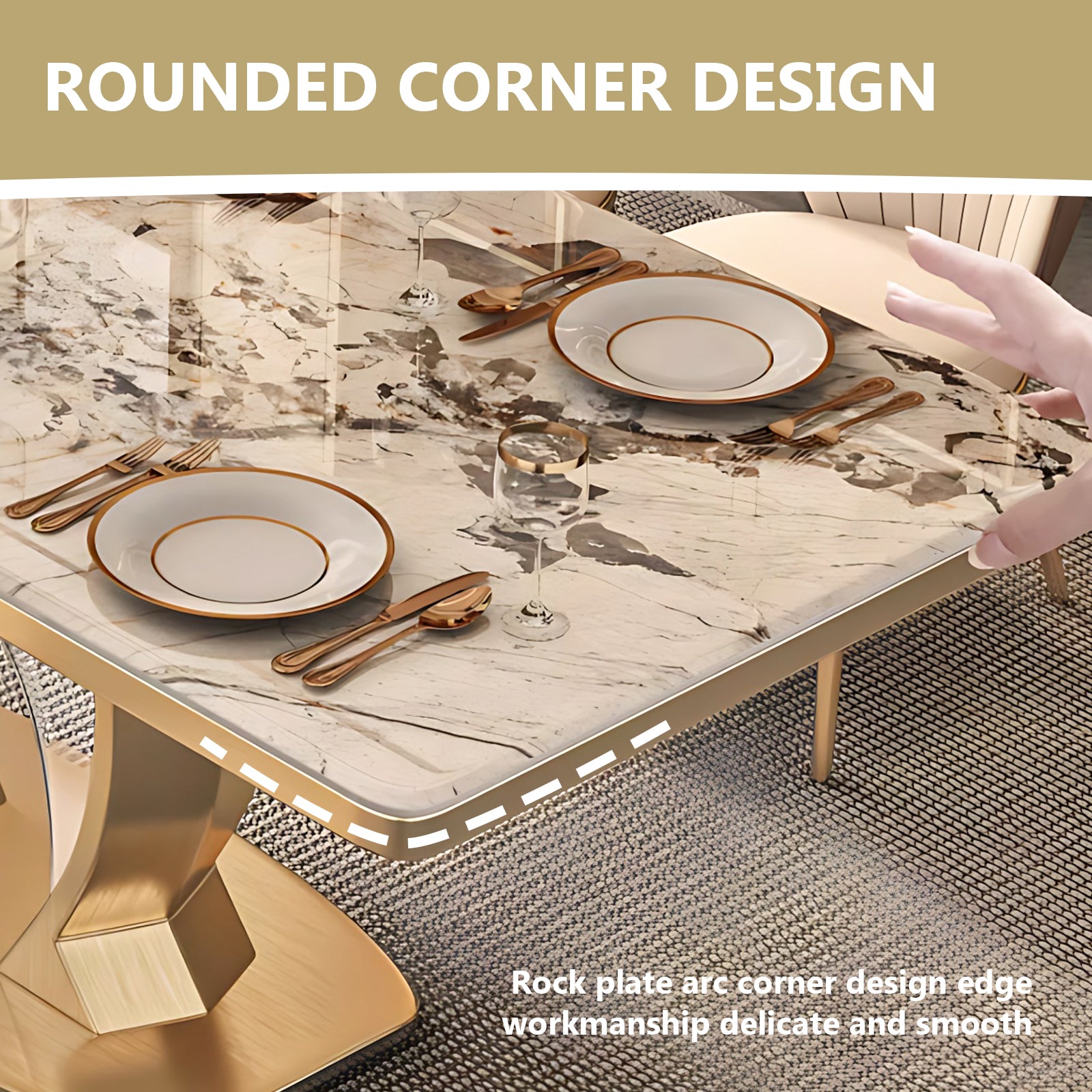 Modern Luxury Style: the texture of the desktop is natural and beautiful, and with the unique design of gold legs, the sense of luxury comes to the fore; the soft white color of the cabinet complements the desktop