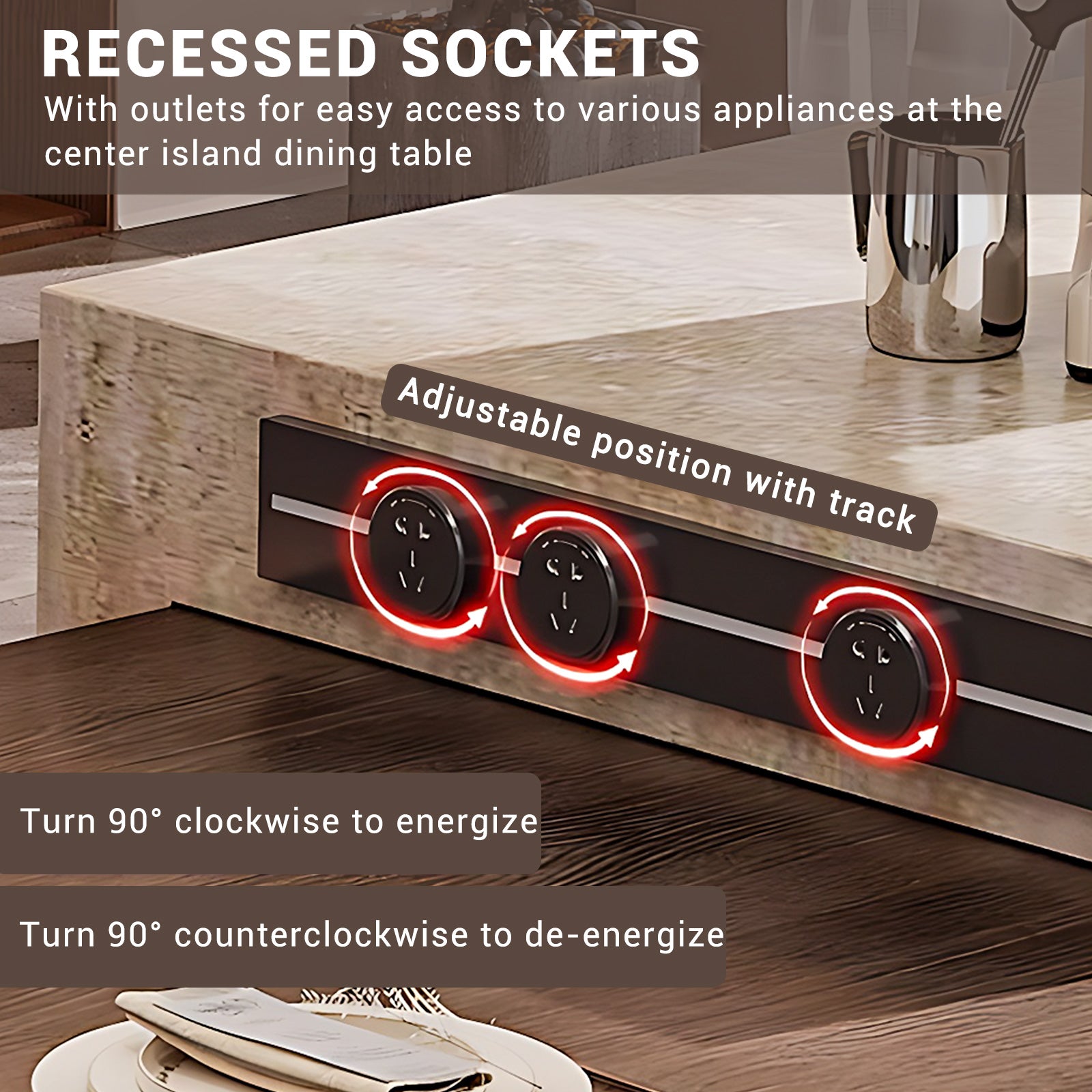 Thoughtful Details: There are convenient sockets on the side of the island, making it easy to use cooking utensils, etc. Drawers and cabinet doors are equipped with cushioned hinge slides, ensuring an easy opening and closing experience