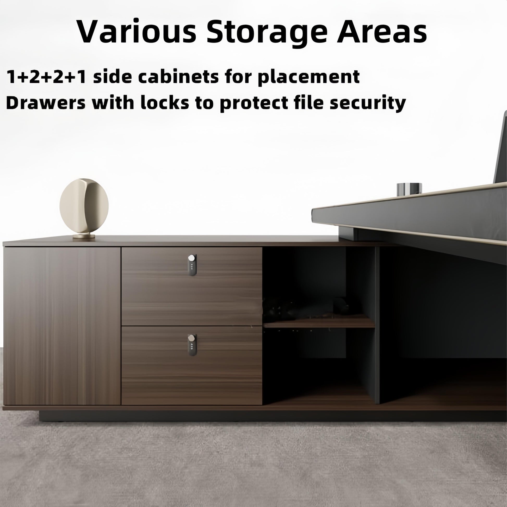 Aihm-Lon L-Shaped Executive Office Desk with Cabinet 78.7"-141.7"