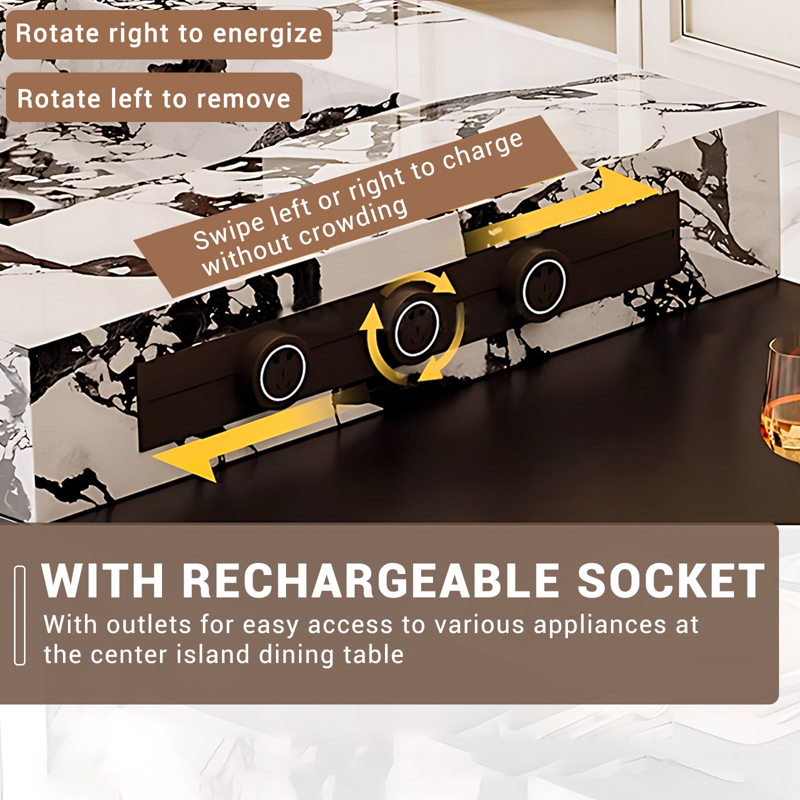Thoughtful Design Details: There is an ambient light at the bottom of the island. For added convenience, the sockets are carefully designed on the side. The table legs are equipped with wheels, allowing the table to be extended smoothly and easily
