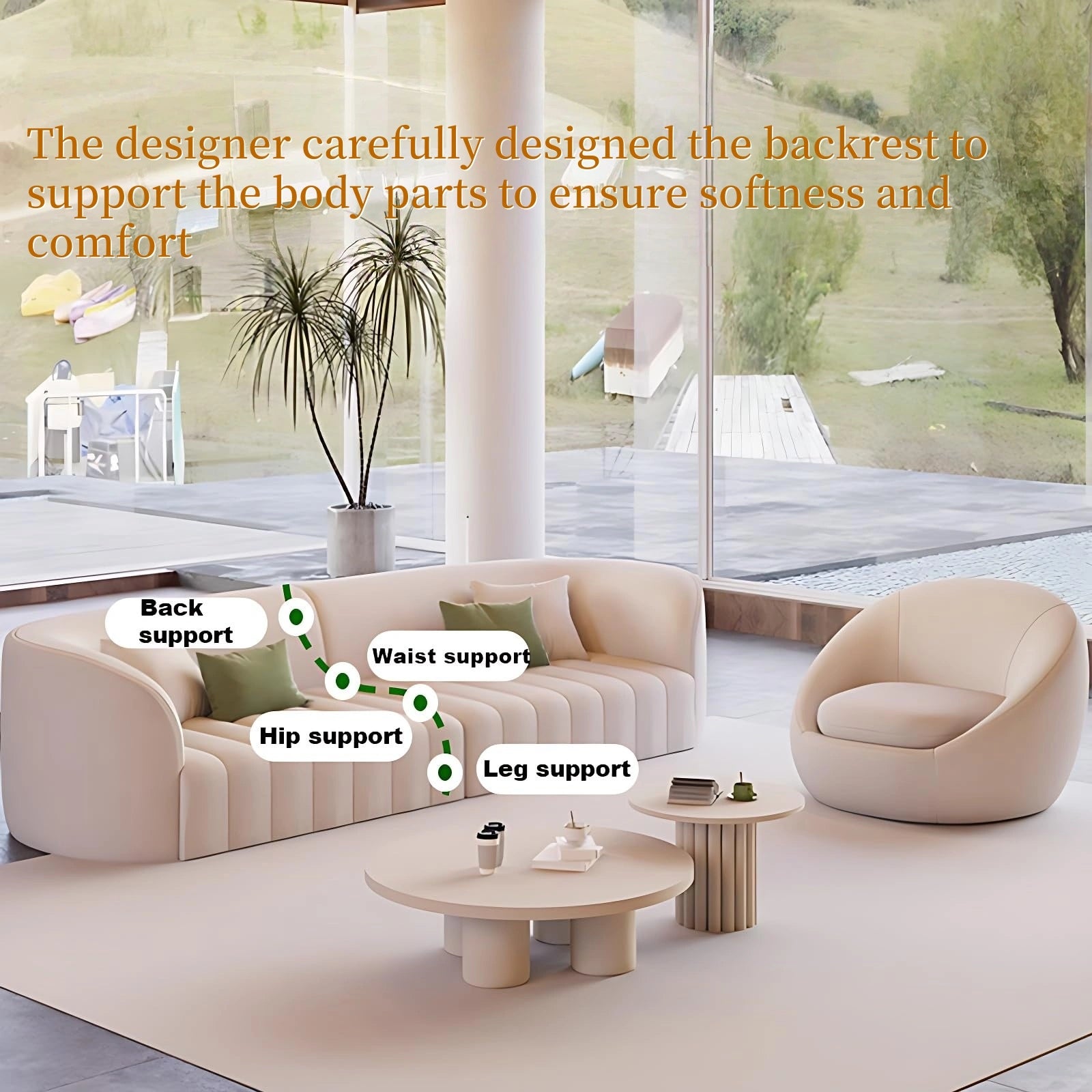 Ultimate relaxation, crafted with craftsmanship: Crafted by award-winning designers, this ergonomic curved sofa has a precisely adjusted backrest and optimal firmness to support the natural curvature of your spine. The wide seat allows you to stretch out and is ideal for movie night, reading time or just relaxing and entertaining.