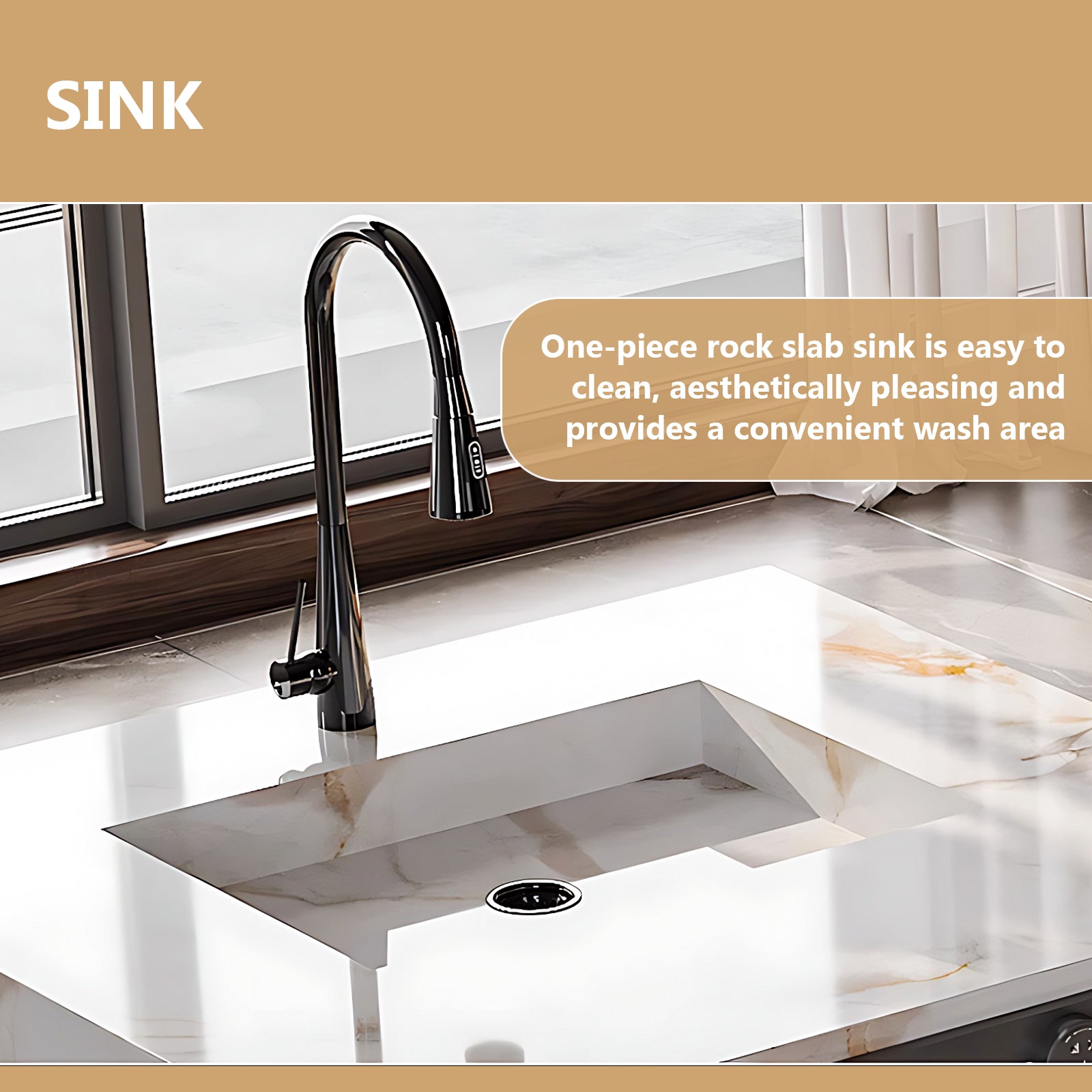 Integrated Slate Sink:This integrated design avoids the gap between the sink and the countertop, and the sink and the island platform are perfectly integrated, which improves the overall practicality of the kitchen