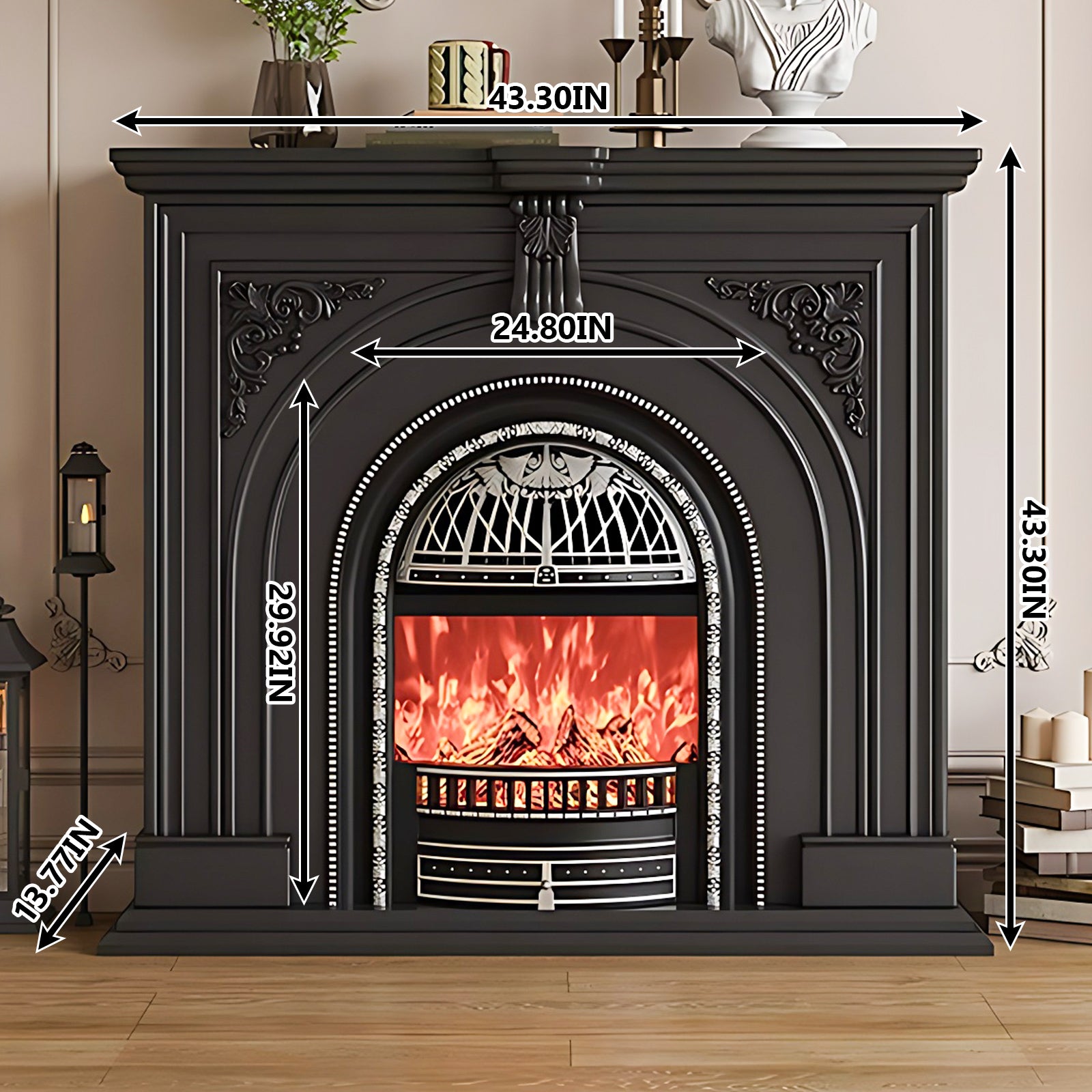 Vintage Wrought Iron Decoration: The wrought iron decoration brings unparalleled convenience and quick warmth. In addition, you can choose to activate the simulated flame function to emit a soothing atmosphere