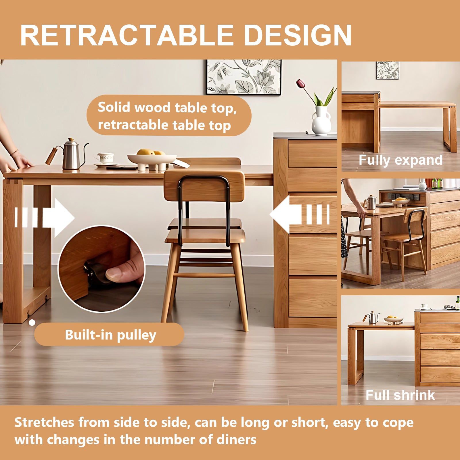 Retractable Dining Table:the island platform and table are integrated, and the size of the table can be adjusted according to the needs, saving space in daily use;when many people have dinner, easy stretching can meet the demand
