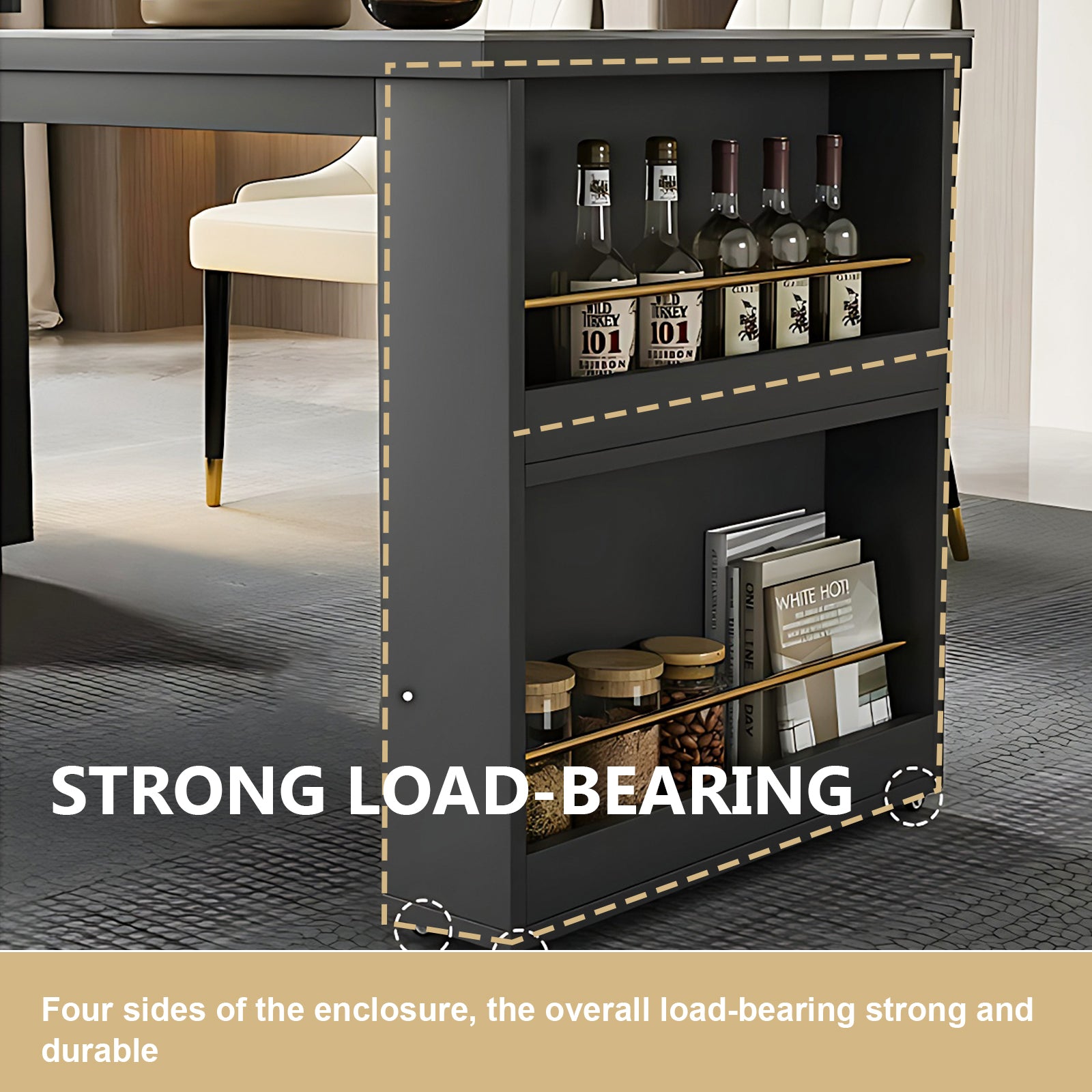 Large Storage Space: the island cabinet has a glass door cabinet to put tea sets, tableware and so on; the open storage design of the table legs can put the items you can take at hand