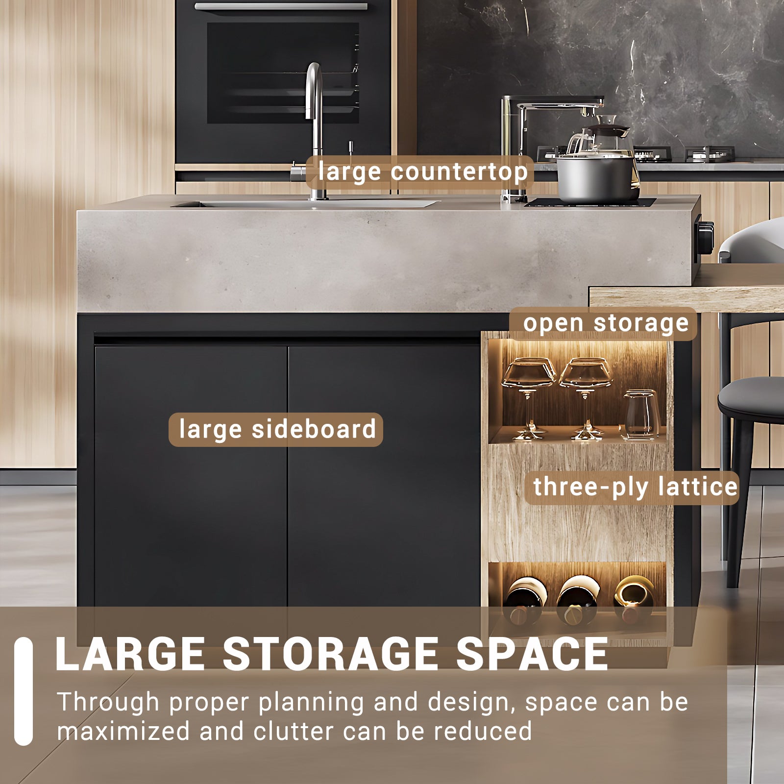 Exquisite Craftsmanship: The island style countertop is exquisitely crafted and features sturdy and elastic rock slabs. Inside and at the top of the dining table, solid wood dominates, providing strong load-bearing strength and long-lasting durability