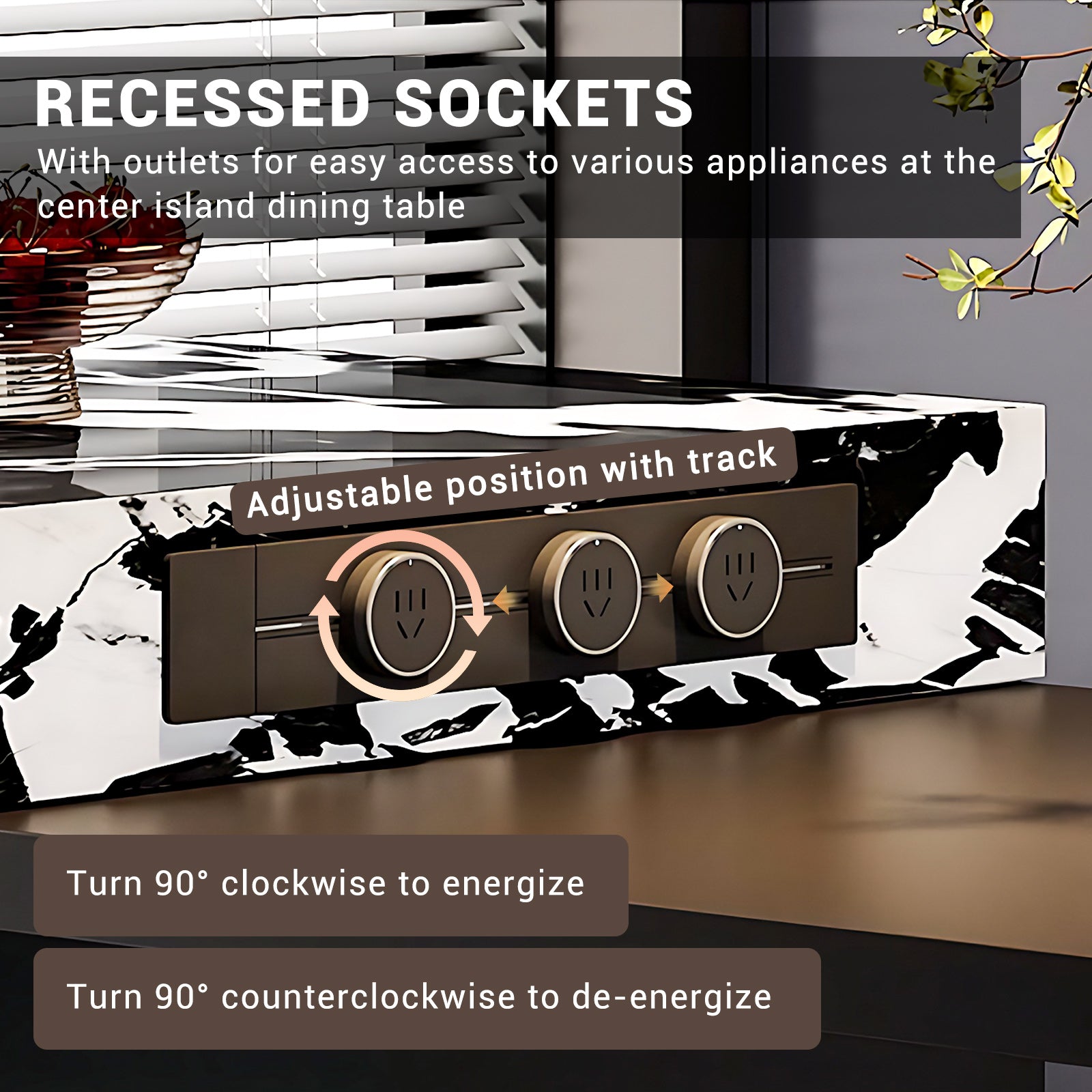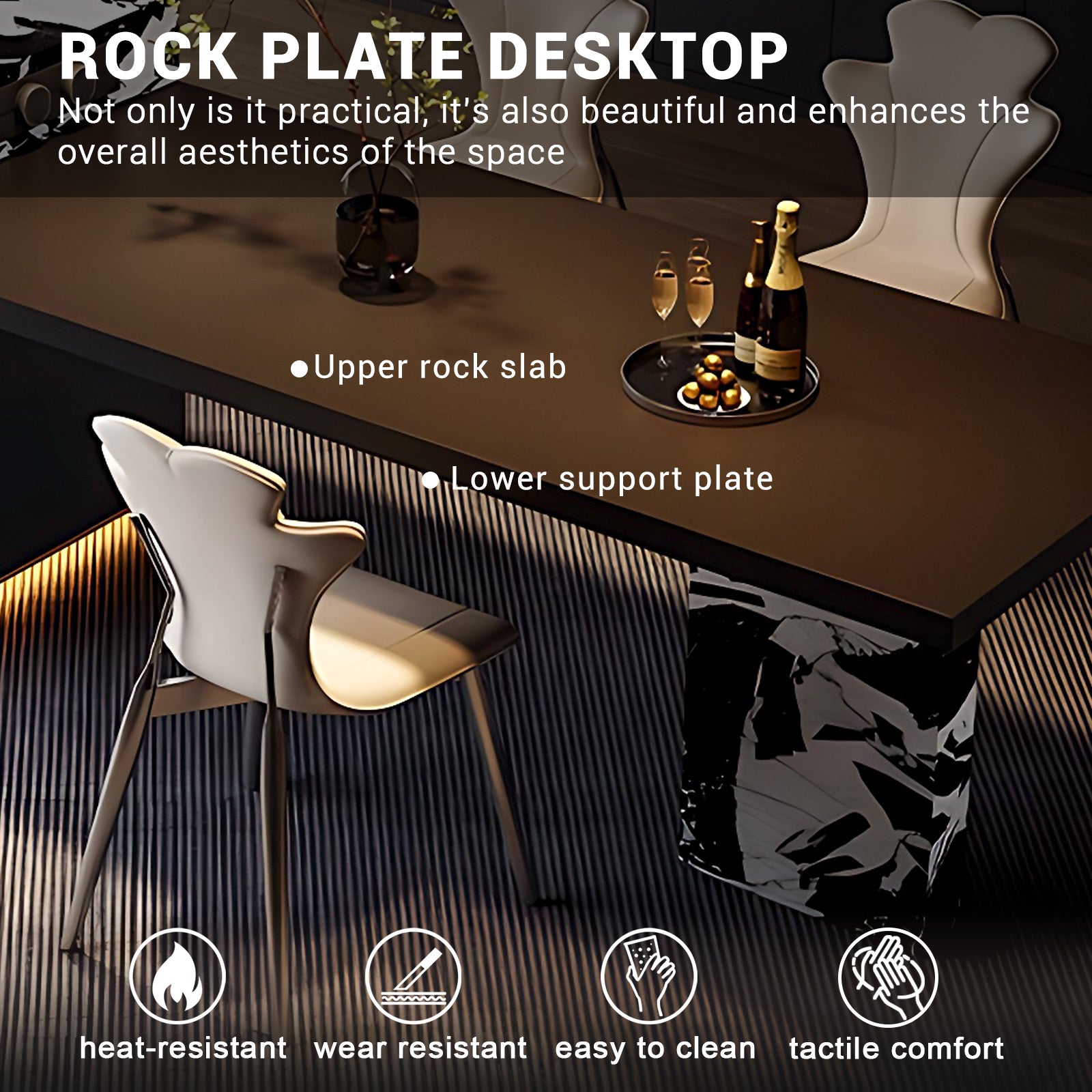 Premium-Grade Rock Slab Material: Crafted from robust and durable rock slabs, the upper surface and tabletop of the island platform, as well as the outer legs of the table, ensure exceptional sturdiness, longevity, and a timeless appeal
