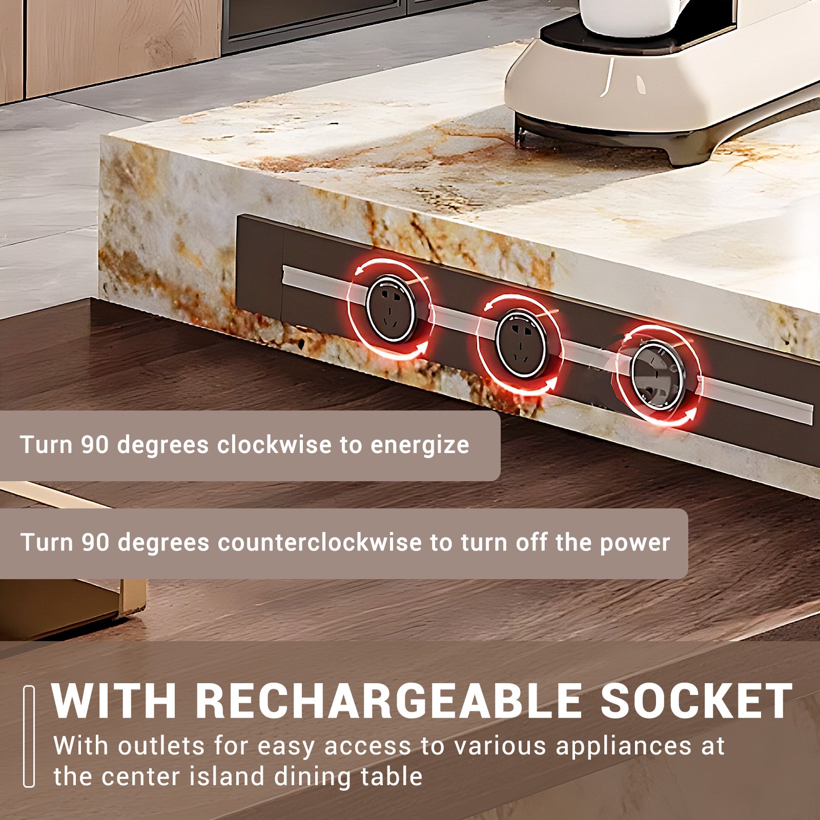 Rock Slab Structure: The table legs and island platform are both made of sturdy rock slab material, ensuring stable and durable support to enhance placement safety. Rock slabs are renowned for their easy to clean and exquisite fashion aesthetics