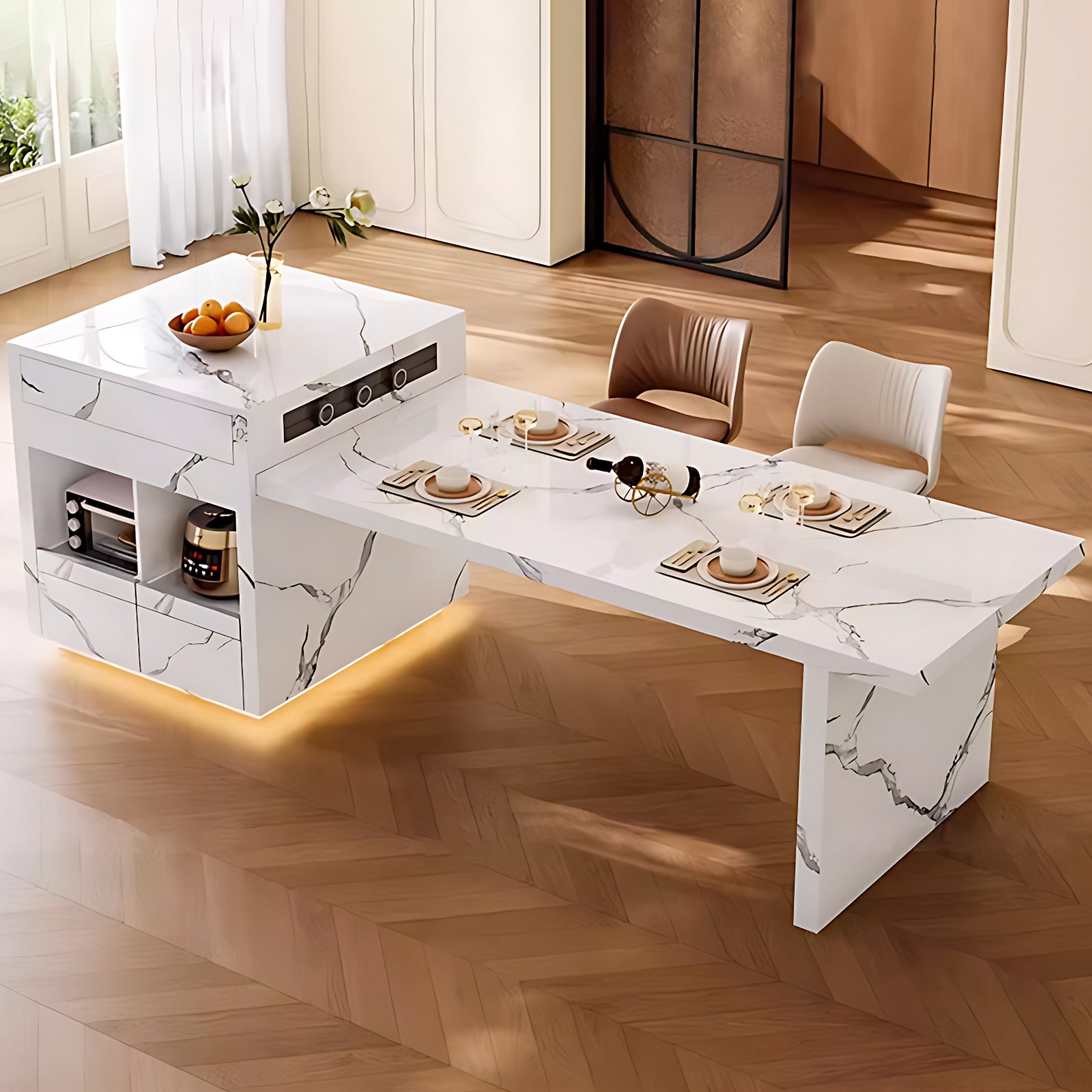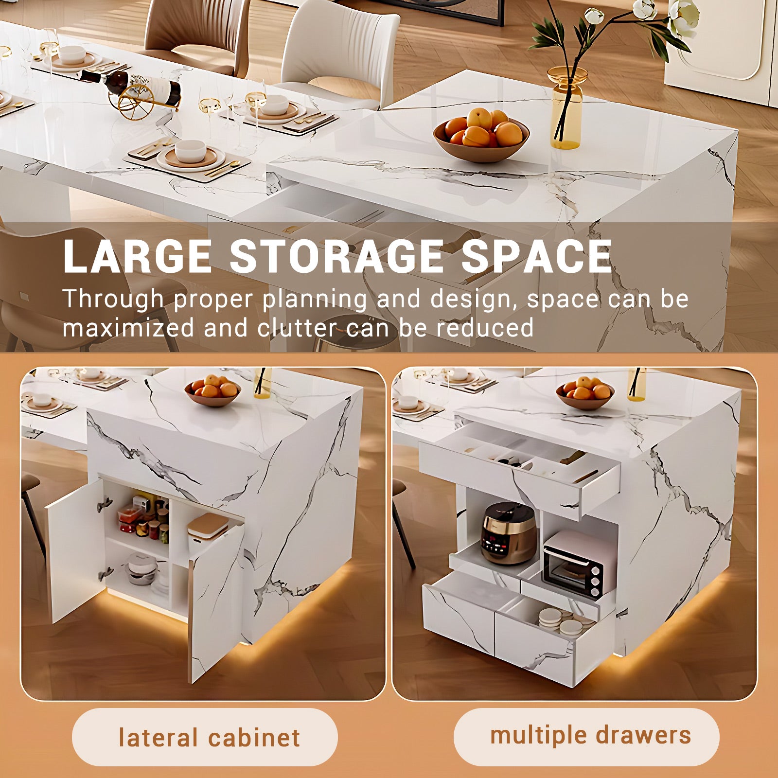 Aihm-Lon Kitchen Island with LED Light with Extendable Table 93.7"-101.57"