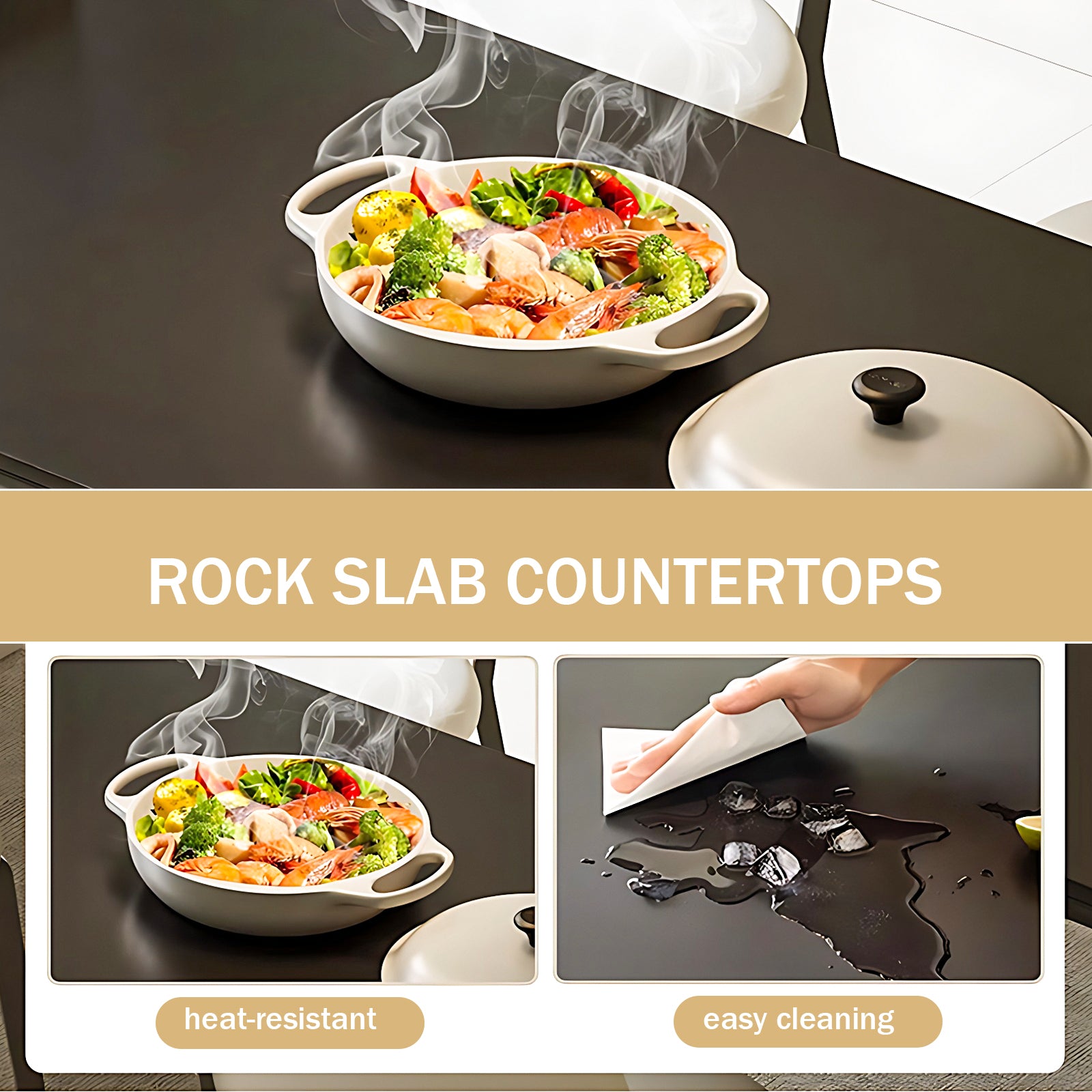 Sturdy and Durable Material: the table top and table top are made of rock plate, which is extremely hard and not easy to deform; the cabinet and table legs are all made of wood, which has good bearing capacity