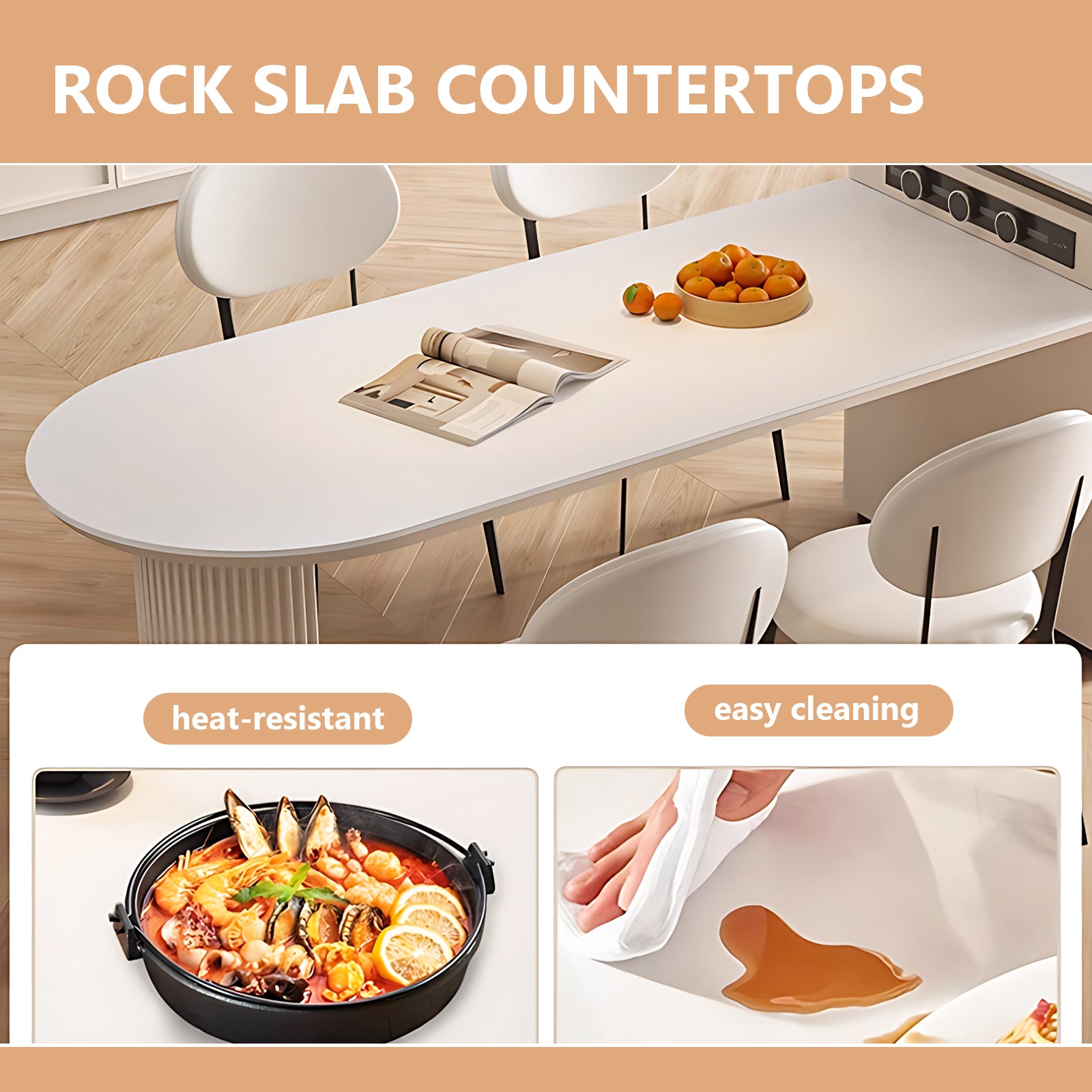 Sturdy and Durable Material: the table top and table top are made of rock plate, which is extremely hard and not easy to deform; the cabinet and table legs are all made of wood, which has good bearing capacity